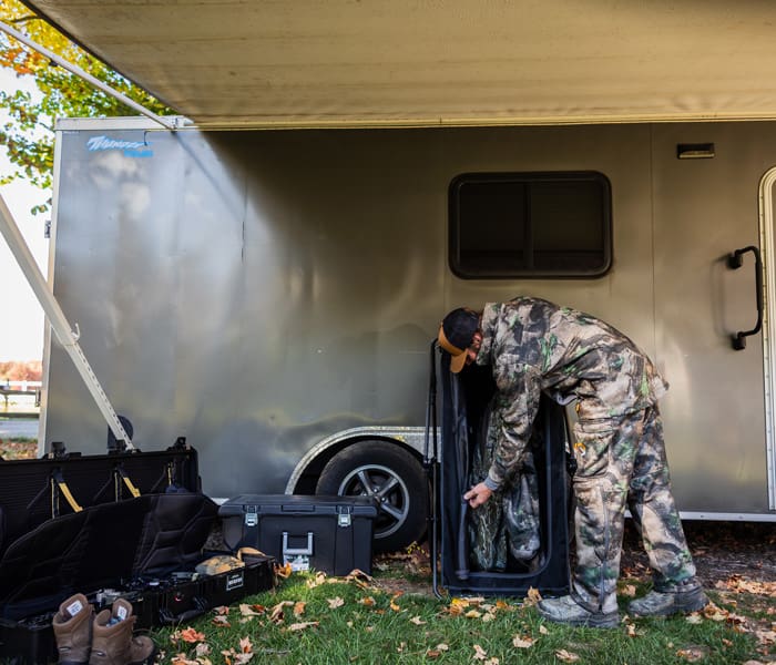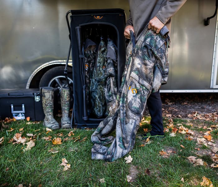 With MOLLE webbing and S-hooks for hanging garments, plus interior and exterior storage pockets, this closet is built for organized, scent-free performance anywhere.